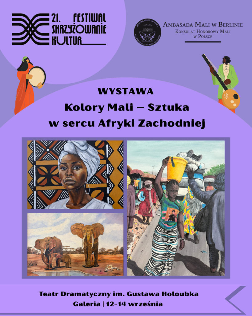 Równolegle do koncertów, filmów i warsztatów, w Galerii Teatru Dramatycznego odbędzie się wystawa malarstwa trzech artystów związanych z Mali: Iwony Wolańskiej–Stachurskiej – polskiej malarki i animatorki życia artystycznego, Seydou Zan Diarry – lekarza weterynarii z Krakowa, którego obrazy oddają tęsknotę za ojczyzną i afrykańskie pejzaże, oraz Cheicka Abdé Kadera Traoré – uznanego malijskiego malarza, laureata licznych nagród i uczestnika międzynarodowych biennale. „Kolory Mali” to wystawa pełna barw, emocji i opowieści o Afryce, która inspiruje i porusza.